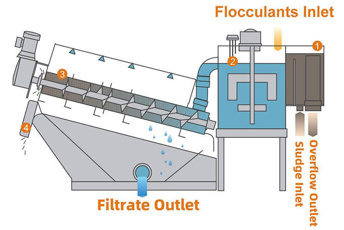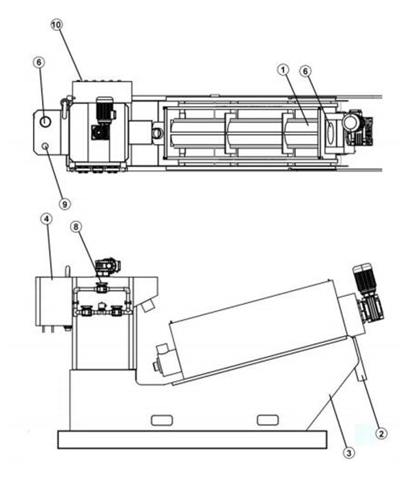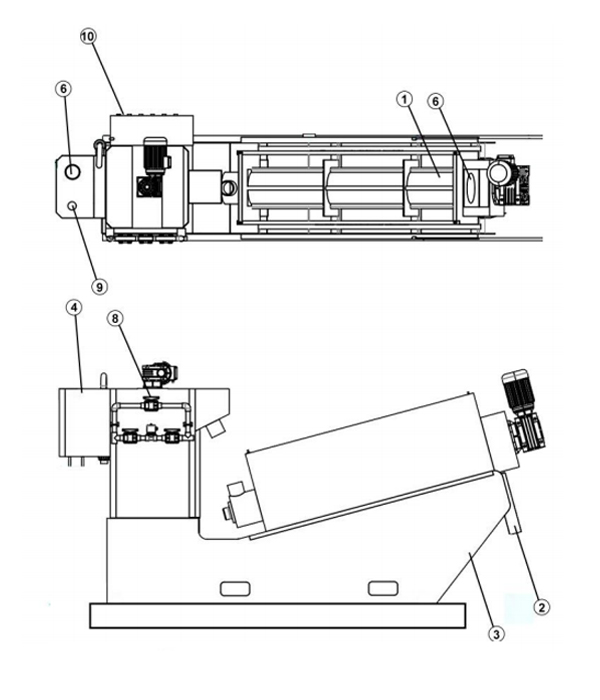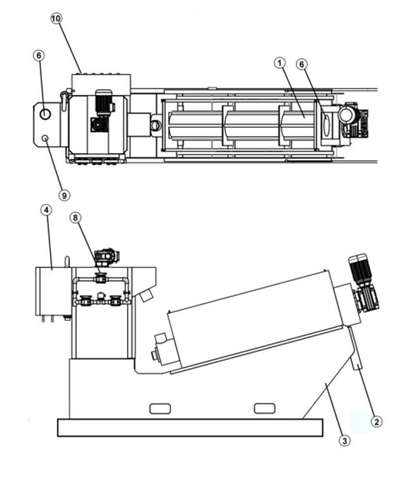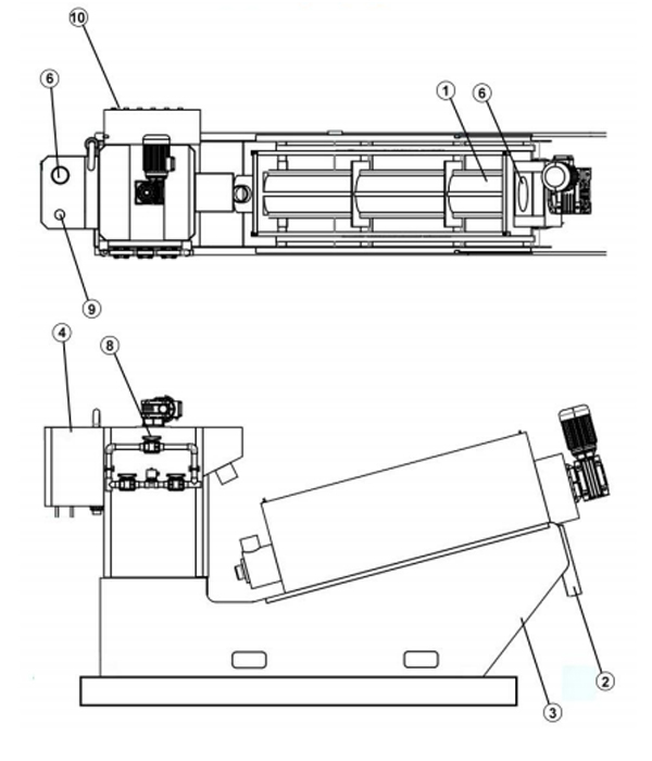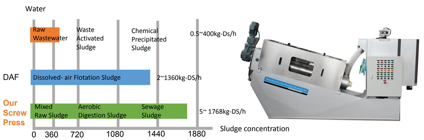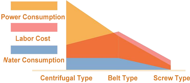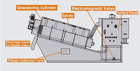 Ruuvityyppinen lietteen vedenpoistopuristin (Screw Press) on rakennettu suodatinelementillä, joka koostuu kahden tyyppisistä renkaista: kiinteästä renkaasta ja liikkuvasta renkaasta; ja ruuvi, joka työntää suodatinelementtiä ja siirtää ja paineistaa lietteen.